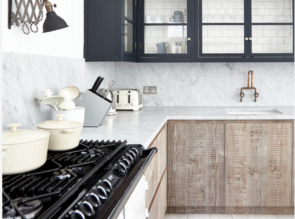 Pros: Butcherblock is inexpensive and easy to DIY. Wood is warmer and softer than stone, making it kid friendly and less likely to shatter a dropped glass.