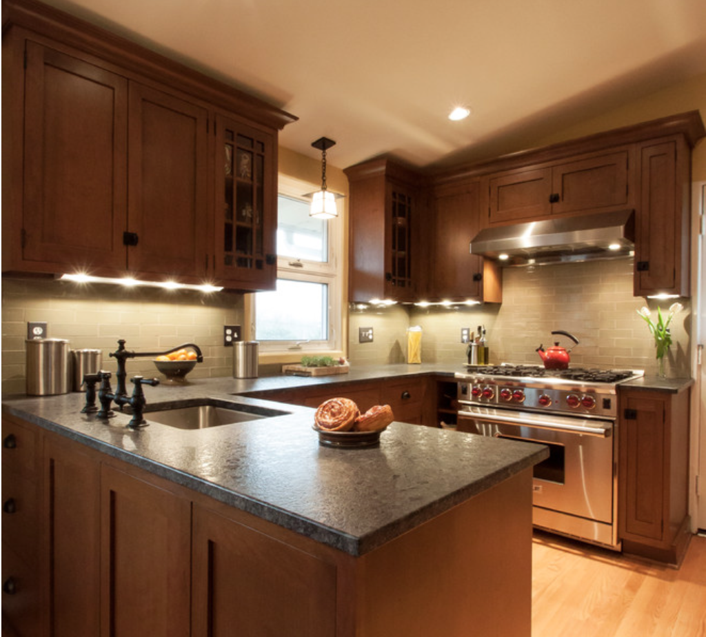 Cons: Granite is not subtle, so it will be the star of your kitchen. If you want to use other colorful, patterned tiles or curtains, it may get busy. This natural stone can stain and needs to be resealed yearly.