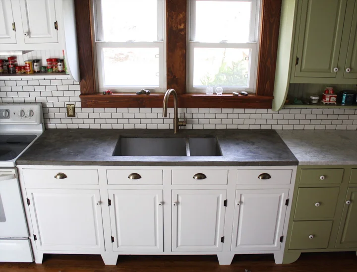 Concrete counters introduce texture and a consistent color to this kitchen.