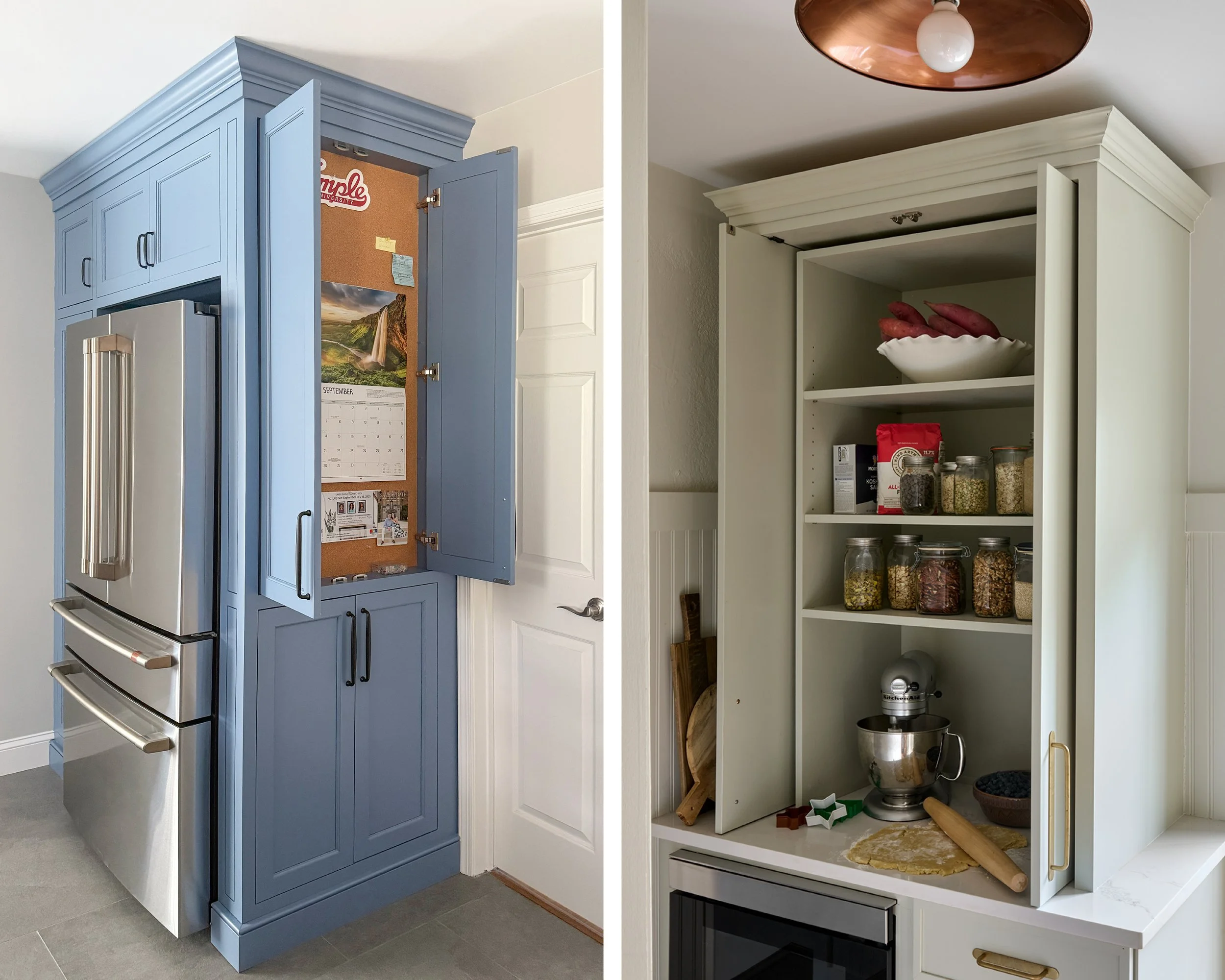 Over the last year we’ve seen more clients asking to customize their cabinets to organize their daily lives and sneak in storage wherever possible. This is especially true for bakers, foodies, and growing families.